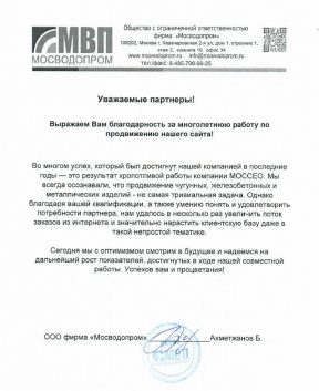 МОССЕО не идёт по пути постоянной закупки ссылок и переоптимизации текстов ключевыми словами и фразами, так как ничего хорошего из этого не получается. Мы: