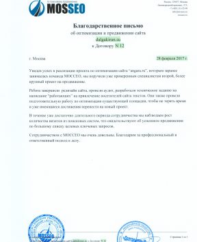 Спасибо специалистам MOSSEO за то, что Вам можно доверять и на Вас не страшно положиться!