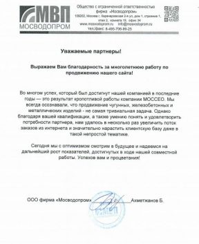 Юдагодарим МОССЕО за эффективное продвижение и развитие нашего сайта!