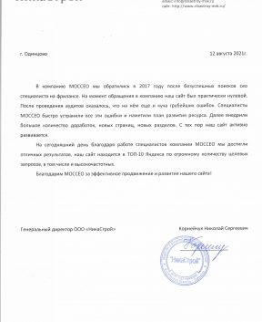 Мы видим результат работы MOSSEO и очень довольны таким плодотворным сотрудничеством. Огромное спасибо вам за ваш труд! Вы лучшие!