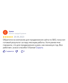 Мы высоко ценим тот результат, который удалось достичь Вашей компании в столь сжатые сроки. Все наши проекты стабильно держатся в ТОПе поисковых систем, а SEO уже много месяцев является нашим основным каналом по привлечению новых клиентов.