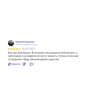 Благодарим за оперативность в решении наших вопросов, честность и интеллигентность в работе. Вам можно доверять!